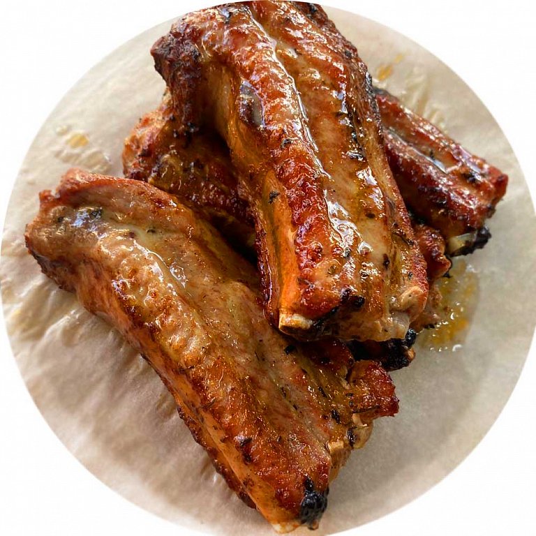 Аппетитные свиные рёбрышки, замаринованные по фирменному рецепту и зажаренные на углях до идеальной корочки — настоящий хит мангала.